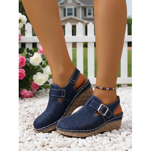 Per donna Pantofole Zoccoli Sandali con la zeppa Taglie forti Pantofole da esterno Esterno Giornaliero Tinta unica Traforato Estate Zeppa Punta tonda Elegante Informale minimalismo PU Mocassino
