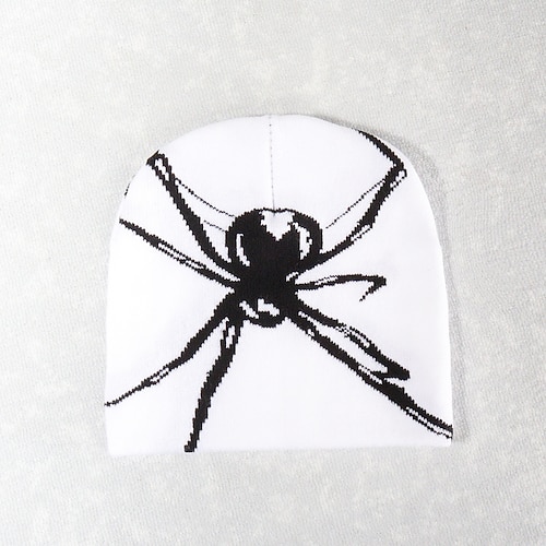 Herren Unisex Beanie Mütze Wintermützen Beanies Schädelkappe Strickmütze Schwarz Weiß Acrylfasern Jacquard Gestrickt Gemütlich Halloween Alltagskleidung Festival Spinne Warm