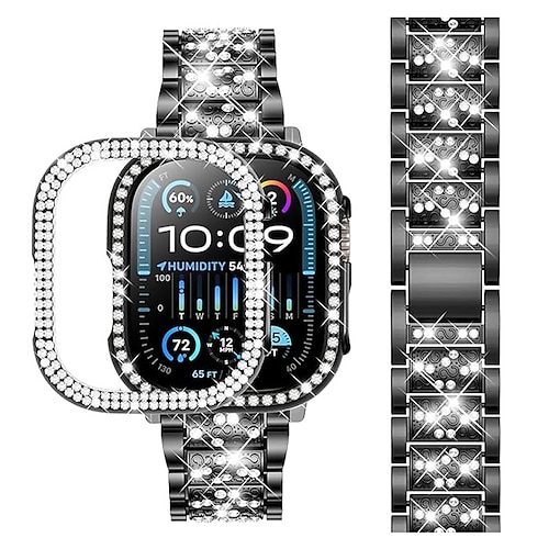 Bracciale Gioiello Compatibile con Cinturino dell'Apple Watch 38mm 40mm 41mm 42mm 44mm 45mm 49mm Da donna Glitter Diamante Bling Acciaio inossidabile Cinturino di ricambio per iwatch Ultra 3 2 Series