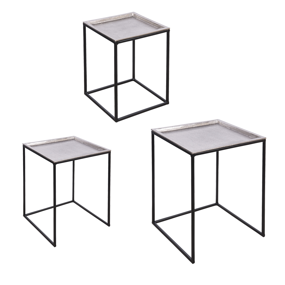 Set aus 3 quadratischen Tischen mit abnehmbaren Tischplatten in Silber - Rectangle Métal Table Passion 40x40 cm