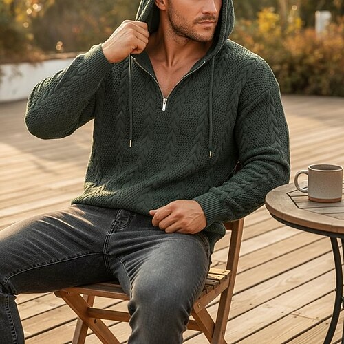 Per uomo Jacquard Felpa con cappuccio Felpa con cappuccio e zip corta Aalbicocca Nero Bianco Verde chiaro Vino Con Cappuccio Semplice Con zip Testurizzato Casuale Quotidiano Sport Outdoor