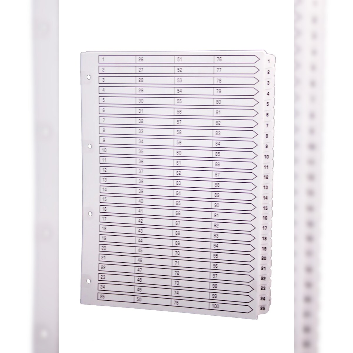 Exacompta MWD1-100Z 2x Bedruckte Register mit plastifizierten Taben, 100 Taben von 1 bis 100, DIN A4 - Weiß