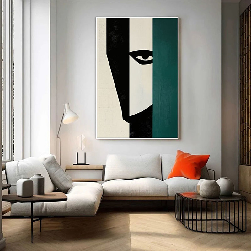 oil painting handmade Abstract Original Geometric Face Oil Painting on Canvas Large Wall Art Black White Green Texture Painting Custom Painting Living Room Wall Decor