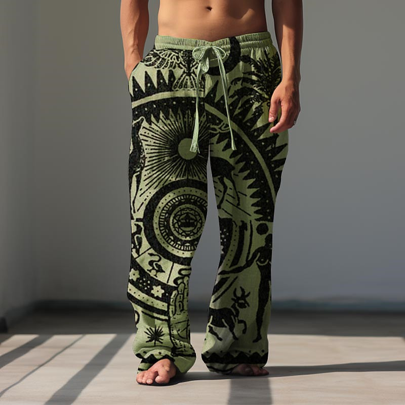 Ethnic Vintage Men's 3D Print Pants Trousers Outdoor Street Going out Polyester Brown Green Khaki S M L Mid Waist Elasticity Pants