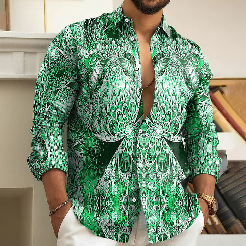 Men's Shirt Graphic Shirt Graphic Turndown Wine Blue Purple Green 3D Print Outdoor Halloween Long Sleeve Print Button-Down Clothing Apparel Vintage Cool Designer Casual