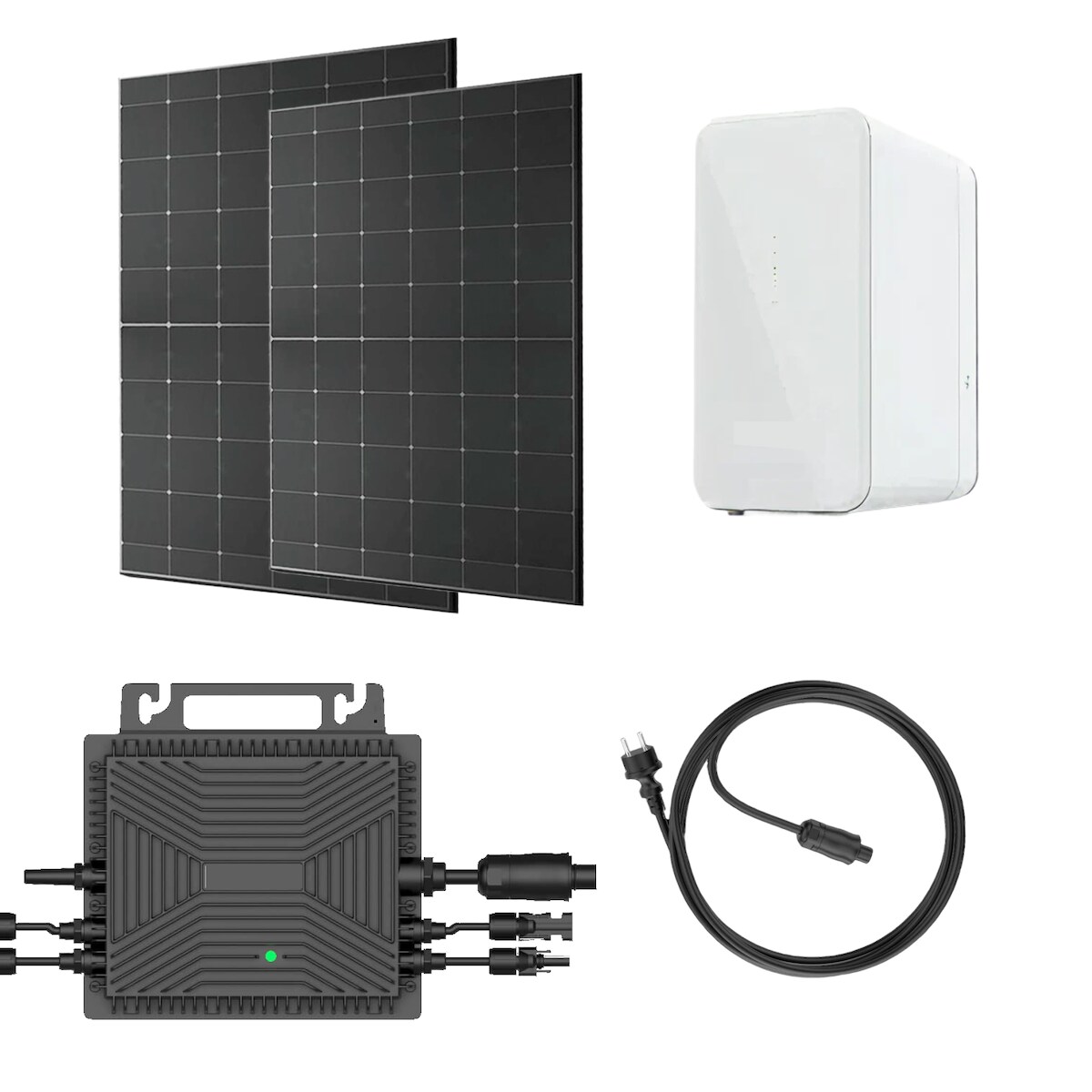 920W Balkonkraftwerk Komplettset mit Stromspeicher, 2x 460W Glas-Glas Module (bifacial, Full Black), 800W WiFi Wechselrichter, 2,24 kWh Speicher