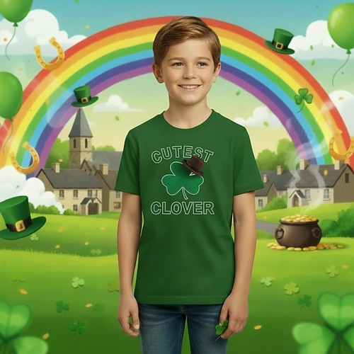 100% Cotone Giorno di San Patrizio Bambini Ragazzi Blu Nero Bianco Grafico Trifoglio Giorno di San Patrizio Maglietta Blusa Girocollo Manica Corta All'aperto Abbigliamento Quotidiano Moda Streetwear