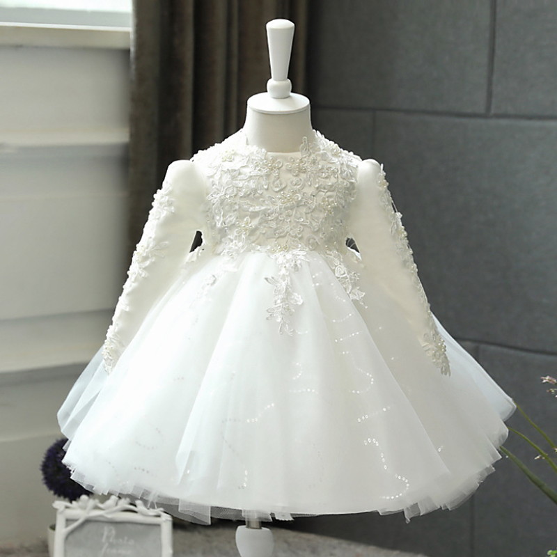 Kids Little Girls' Dress Solid Colored Flower A Line Dress Party Special Occasion Birthday Mesh Red White Maxi Long Sleeve Princess Sweet Dresses Fall Spring Regular Fit 3-12 Years
