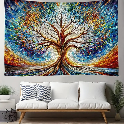 arazzo Coperta Arazzi da Parete Vetro colorato Albero della vita Stampa 3D Mistico Camera da letto Soggiorno Dormitorio Decorazioni Parete Porta Sfondo