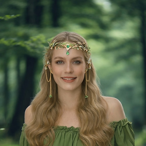 Retrò Vintage Medievale Rinascimento Copricapo Orecchini Elfo Fata Costume Unisex Fantasia Halloween Carnevale Fiera Rinascimentale LARP Adulti Copricapo Orecchini Tutte le stagioni