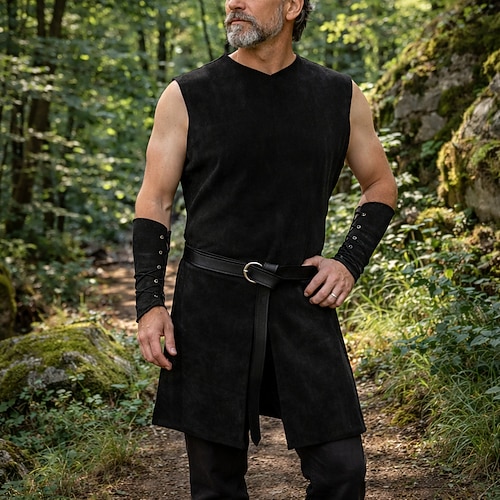 Set Retrò Vintage Medievale Rinascimento Gilet Cintura in Vita Tutore per polso con accessori Senza maniche Elfo Ranger Girocollo Costume Unisex Fantasia Halloween Carnevale Fiera Rinascimentale LARP