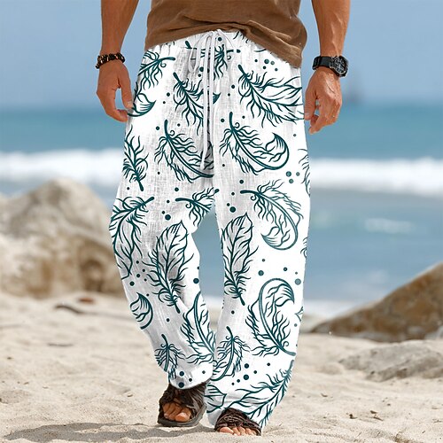 Per uomo Foglia di palma Piante Tropicali Pantaloni Pantaloni Larghi Pantaloni casual Misura del girovita medio Hawaiano All'aperto Vacanza Abbigliamento mare Coulisse elastica in vita Pantaloni tipo