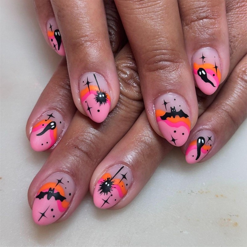 24 Pcs Halloween Press on Nails Long Stiletto Fake Nails Red Black Gradient False Nails with 3D Design Goth Acrylic Nails Press ons Halloween Glue on Nails Full Cover Reusable Stick on Nails for Women