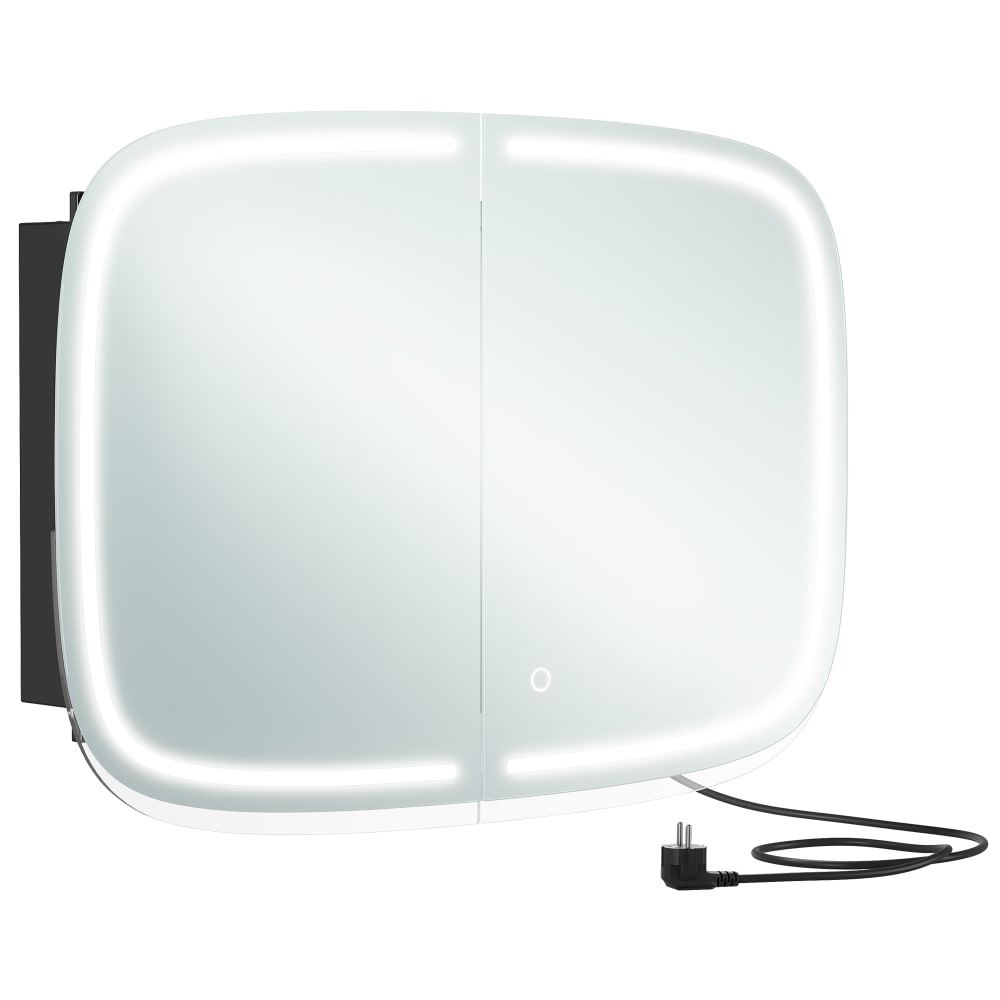Armadietto bagno parete specchio luce prese usb 2 ripiani nero
