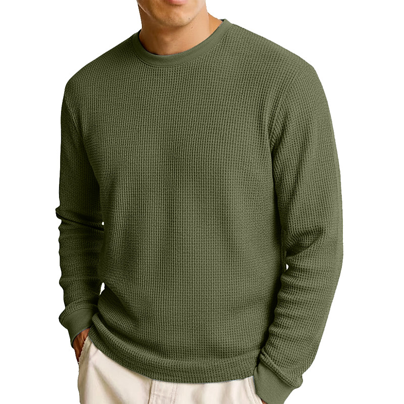 Men's Waffle Shirt T Shirt Tee Top Long Sleeve Shirt Long Sleeve Crew Neck Fall Spring Fall Fall Winter Plain Textured Fashion Designer Basic Knitted Vacation Street Casual Black White Burgundy