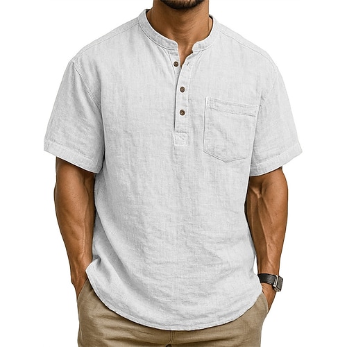 Per uomo Camicia Camicia popover Camicia Estiva Camicia casual Camicia da Spiaggia Nero Bianco Verde chiaro Verde scuro Viola Manica Corta Semplice Colletto alla coreana Vacanza Camicia hawaiana Tasca