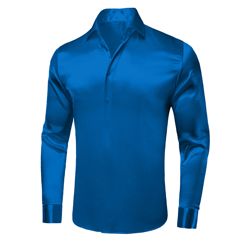 Men's Shirt Satin Shirt Dress Shirt Casual Shirt Button Up Shirt Prom Shirt Plain Formal Wedding Light Blue Black Pink Royal Blue Long Sleeve Henley Collar All Seasons Clothing Apparel
