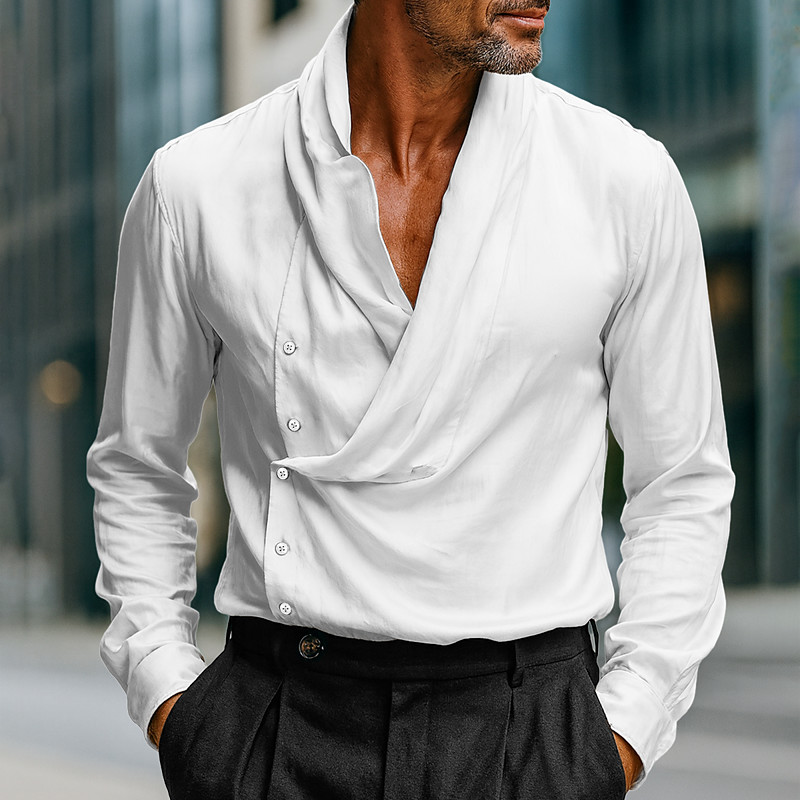 Men's Shirt Satin Shirt Dress Shirt Casual Shirt Button Up Shirt Prom Shirt Plain Formal Wedding Black Wine Royal Blue Gold Long Sleeve Shawl Collar All Seasons Clothing Apparel Wrap