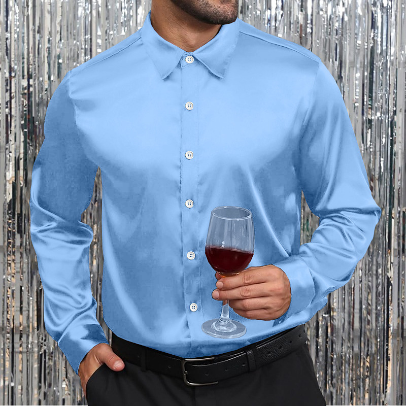Men's Shirt Satin Shirt Dress Shirt Casual Shirt Button Up Shirt Prom Shirt Plain Formal Performance Light Blue Black Royal Blue Gold Long Sleeve Lapel All Seasons Clothing Apparel