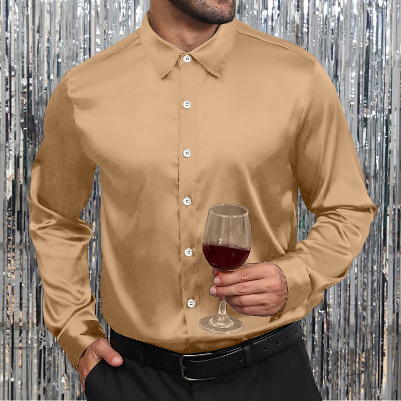 Men's Shirt Satin Shirt Dress Shirt Casual Shirt Button Up Shirt Prom Shirt Plain Formal Wedding Black Red Royal Blue Gold Long Sleeve Lapel All Seasons Clothing Apparel Color Block