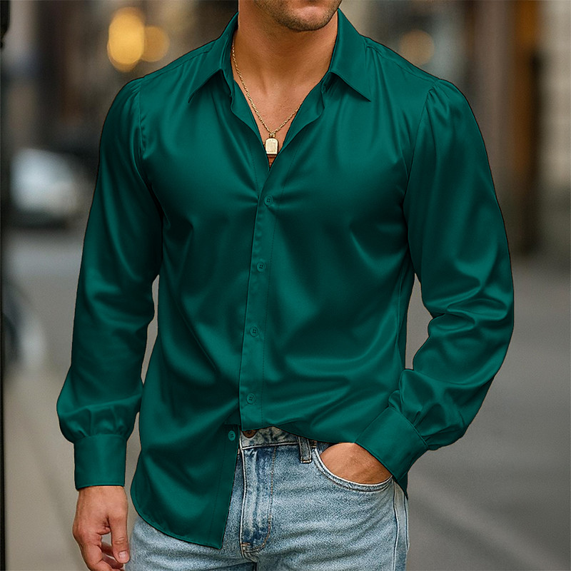Men's Shirt Satin Shirt Dress Shirt Casual Shirt Button Up Shirt Prom Shirt Plain Formal Wedding Black White Royal Blue Green Long Sleeve Lapel All Seasons Clothing Apparel