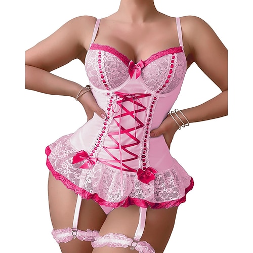 Per donna Lingerie Sexy Body Sexy Pizzo Senza schienaNightwearPoliestere Vacanza Casa Quotidiano Tinta unita Moda Carino Nero Bianco Rosa Blu marino Blu Primavera Estate Autunno Inverno
