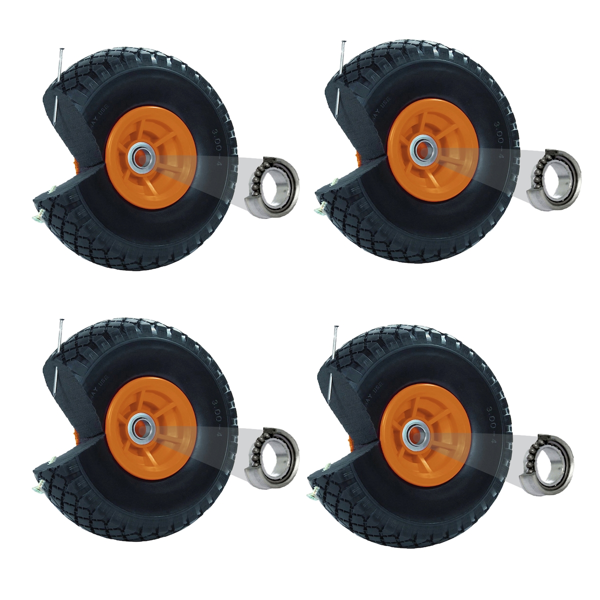 Baumarktplus 4x Sackkarrenrad PU-Rad 260x85 mm 3.00-4 60 mm versetze Nabe Ø 20 mm orange Vollgummi Bollerwagen