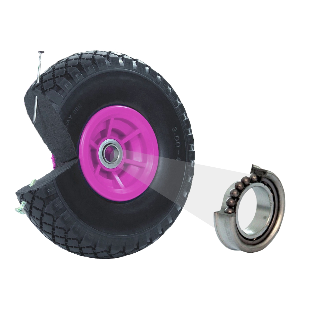 Baumarktplus Sackkarrenrad PU-Rad 260x85 mm 3.00-4 60 mm versetze Nabe Ø 20 mm pink Vollgummi Bollerwagen