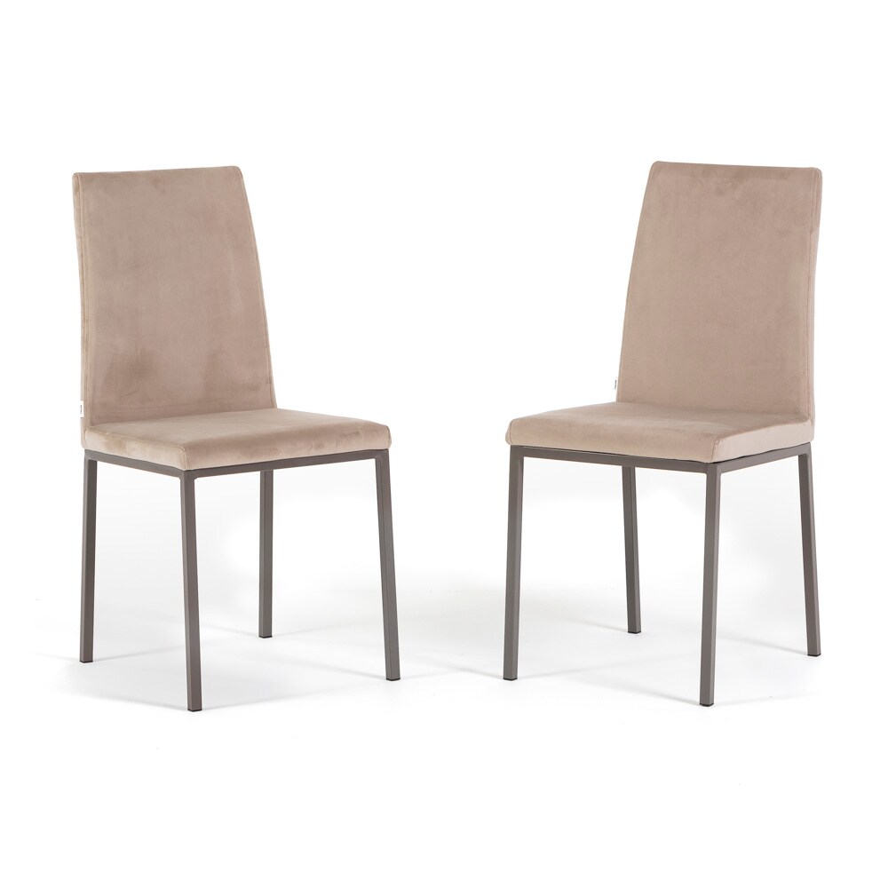 RATTATAN Set aus 2 Samtstühlen für den Innenbereich,hohe Rückenlehne,Metallbeine, elegantes Design,für Küche,Bar und Restaurant – Alma – Beige/Taube