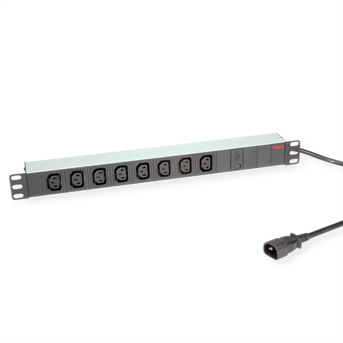 ROLINE 19-Zoll-Steckdosenleiste 8-fach C13 + C14-Stecker, 10A, Aluminium, 2 m