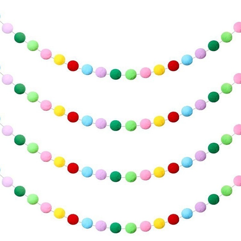 4 Pieces Wool Felt Ball Garland Colorful Pom Pom 6.5 ft Long 24 Ball Garland for Holiday Party Christmas Halloween Classroom Thanksgiving Xmas