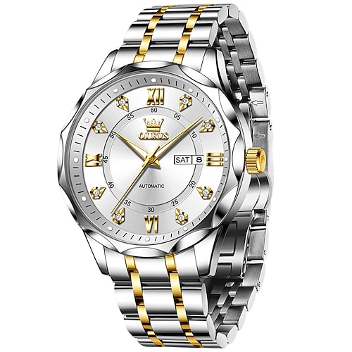 Nuovo orologio da uomo business del marchio olevs con display luminoso, calendario e indicazione della settimana, movimento meccanico completamente automatico, forma a rombo con diamanti incastonati,