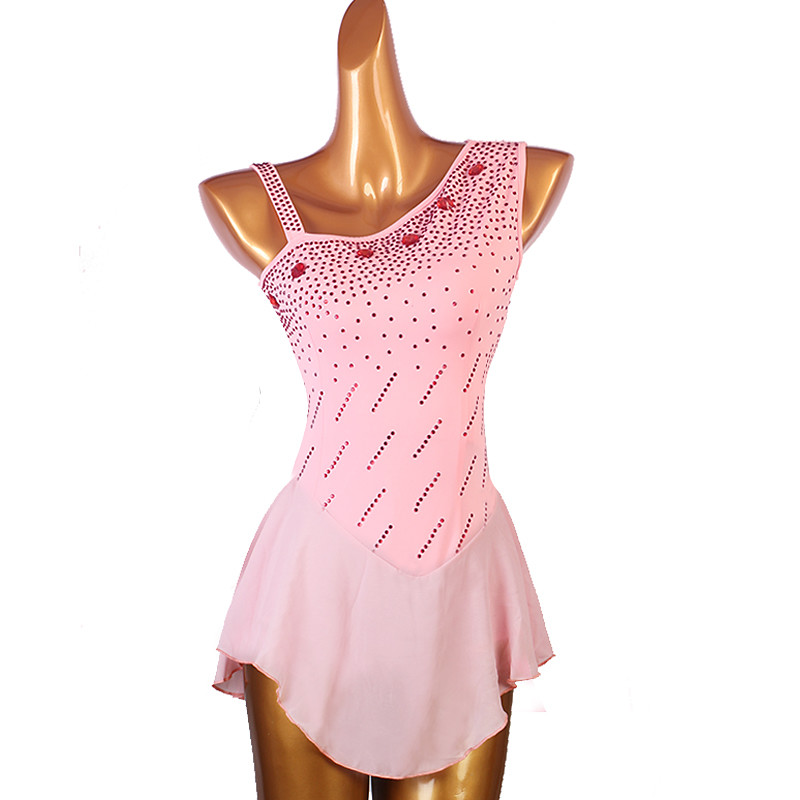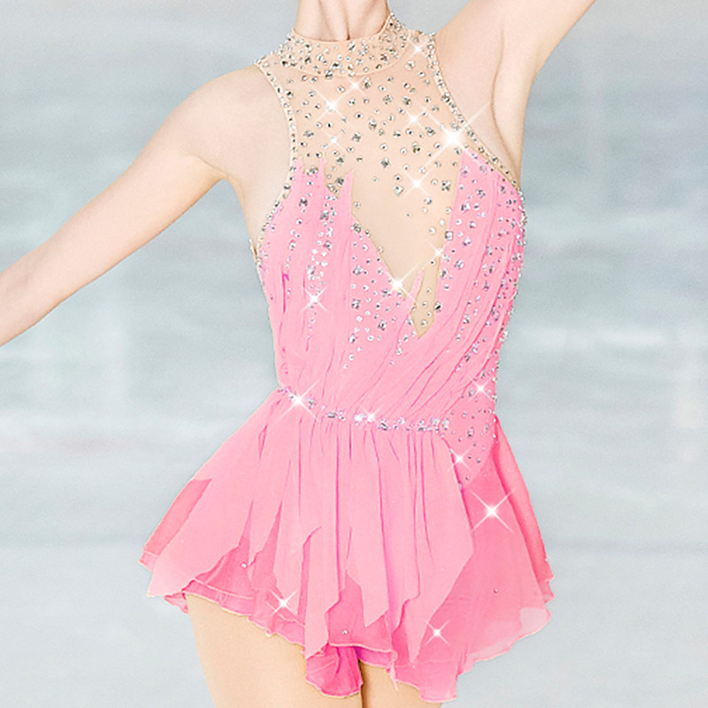 Figure Skating Dress Women's Girls' Ice Skating Dress Pink Patchwork Mesh Spandex High Elasticity Training Practice Professional Skating Wear Classic Crystal / Rhinestone Sleeveless Ice Skating