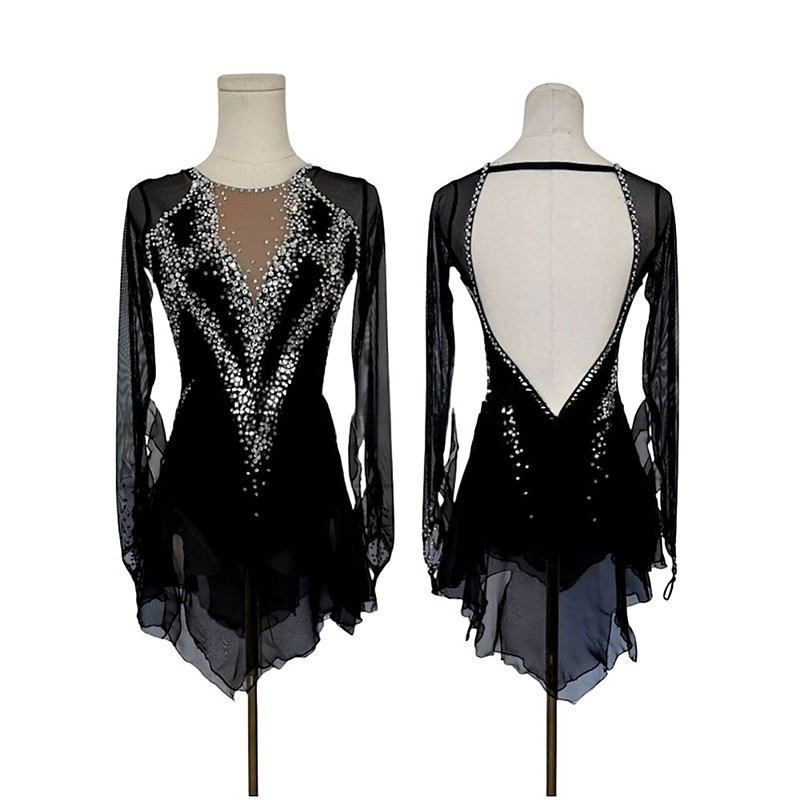 Figure Skating Dress Women's Girls' Ice Skating Dress Black High Elasticity Training Competition Skating Wear Classic Crystal / Rhinestone Long Sleeve Ice Skating Figure Skating