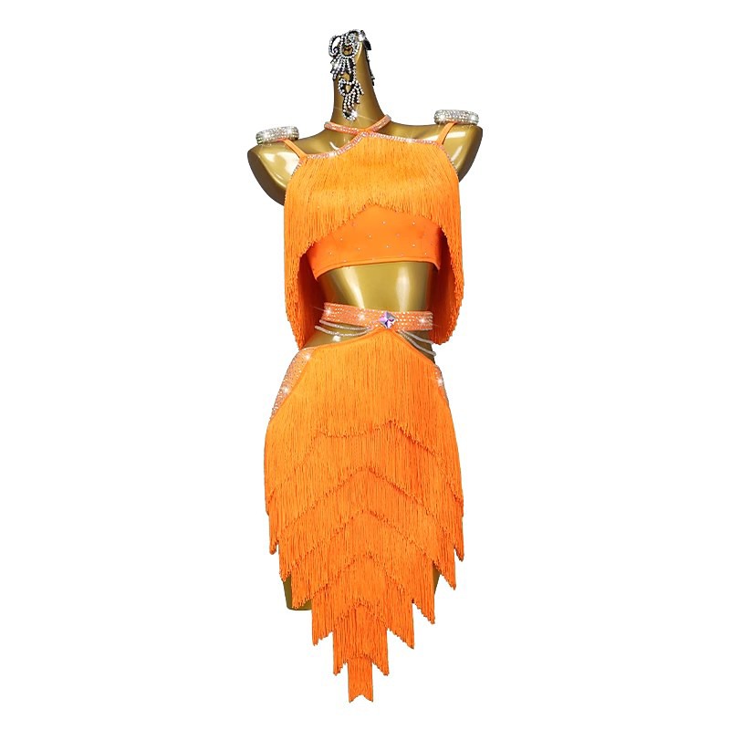 Latin Dance Dress Crystal / Rhinestone Tassel Pure Color Women's Performance Training Sleeveless Spandex