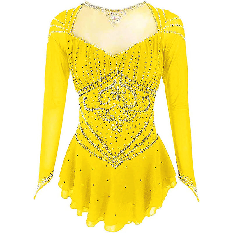 Figure Skating Dress Girls' Long Sleeves Competition Elegant Handmade Crystal Womens