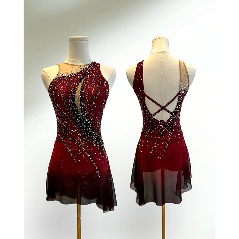 Figure Skating Dress Women's Girls' Ice Skating Dress Red High Elasticity Training Competition Skating Wear Classic Crystal / Rhinestone Long Sleeve Ice Skating Figure Skating