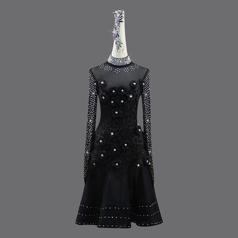 Latin Dance Dress Petal Crystal / Rhinestone Pearls Women's Party Performance Long Sleeve Spandex