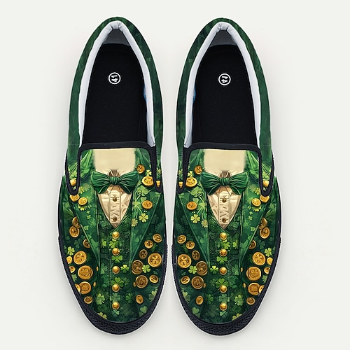Grüne Herren-Sneaker zum St. Patrick's Day – stylisches Slip-on-Design mit festlichem Kleeblattmuster, perfekt für die Feierlichkeiten zum St. Patrick's Day