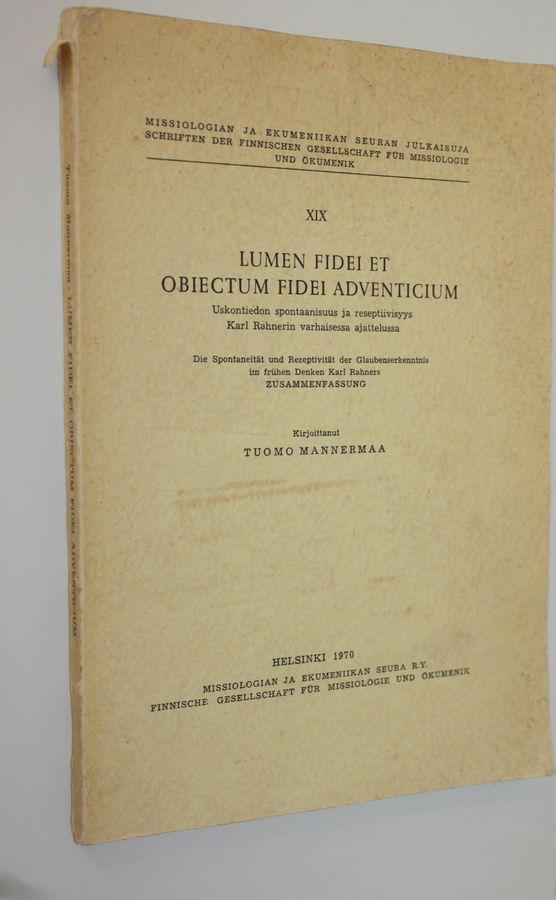 Tuomo Mannermaa : Lumen fidei et obiectum fidei adventicium : Uskontiedon spontaanisuus ja reseptiivisyys Karl Rahnerin varhaisessa ajattelussa = Die
