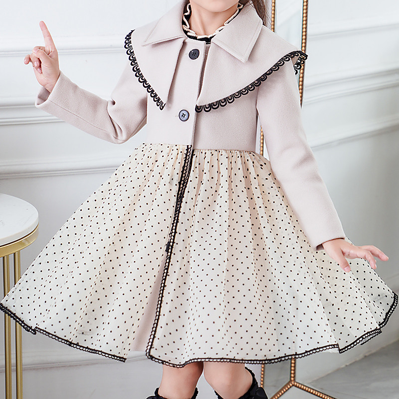 Kids Girls' Trench Coat Coat Woolen Coat Outerwear Polka Dot Plain Long Sleeve Patchwork Coat School Cute Sport Red Beige Winter Fall 4-13 Years