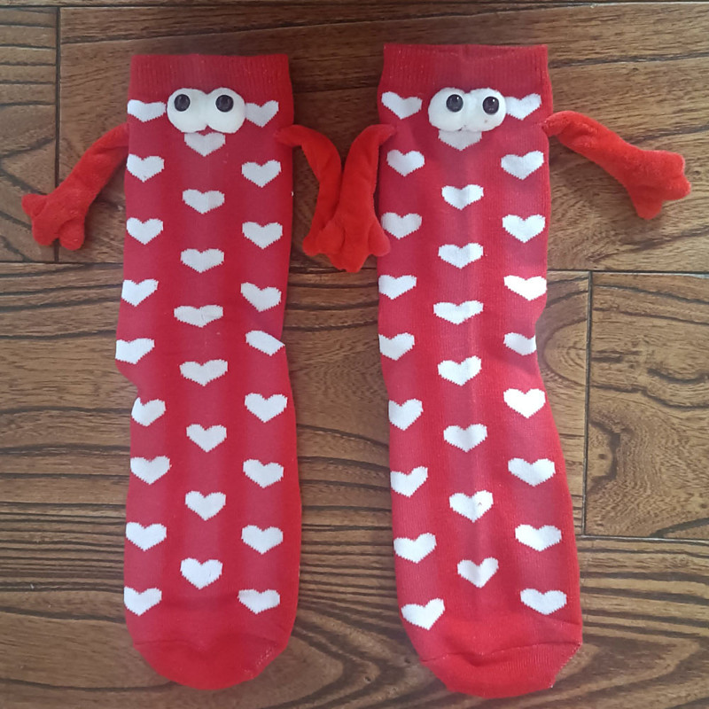 Valentine's Day Couple Heart Magnet Socks, Breathable Mid-Calf Socks with Hand-Holding Design, Perfect Valentine's Day Gift, Ideal for Couples, Cozy and Stylish Holiday Wear