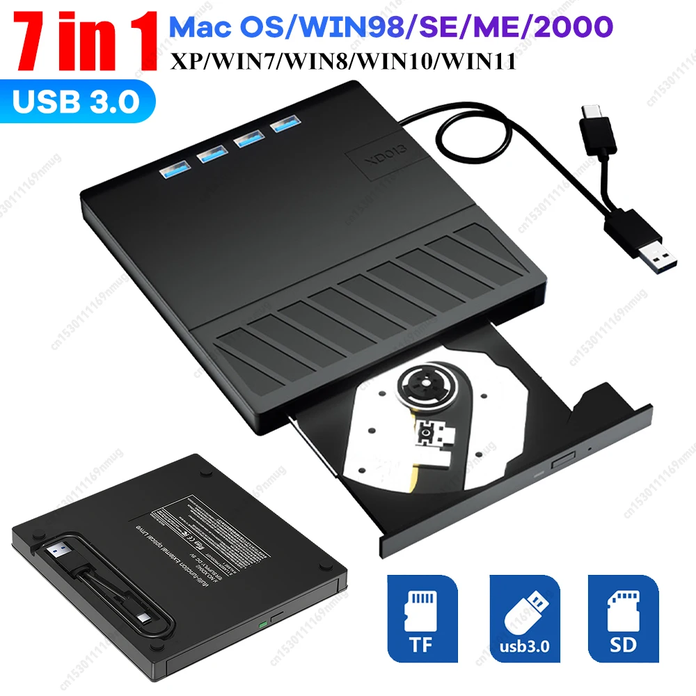 7 in 1 tragbares USB 3.0 ultradünnes externes DVD-Recorder-Laufwerk, Lesegerät, optisches Laufwerk für Laptop-Desktop-Zubehör