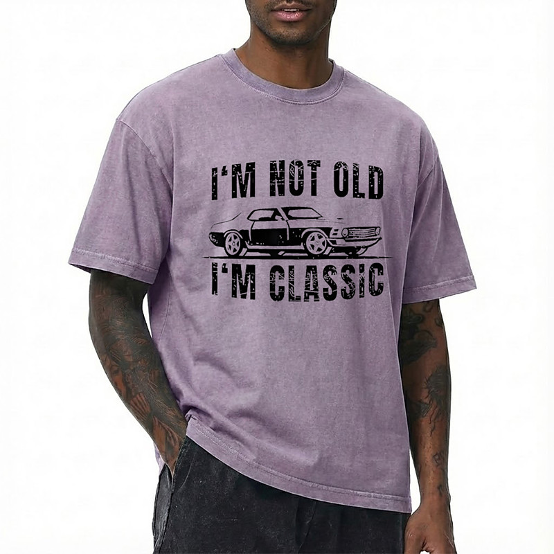 Mens Washed Cotton Blend T Shirt Im Not Old Im Classic Funny Vintage Muscle Car Graphic Distressed Retro Tee Clothing Apparel S M L XL XXL XXXL