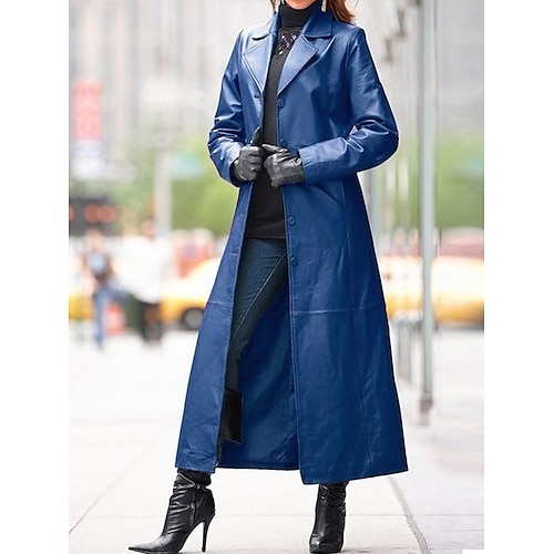 Per donna Giacca in Ecopelle Trench All'aperto Bottoni Semplice Impermeabile Streetwear Vestibilità regolare Capispalla Manica Lunga Autunno Blu L