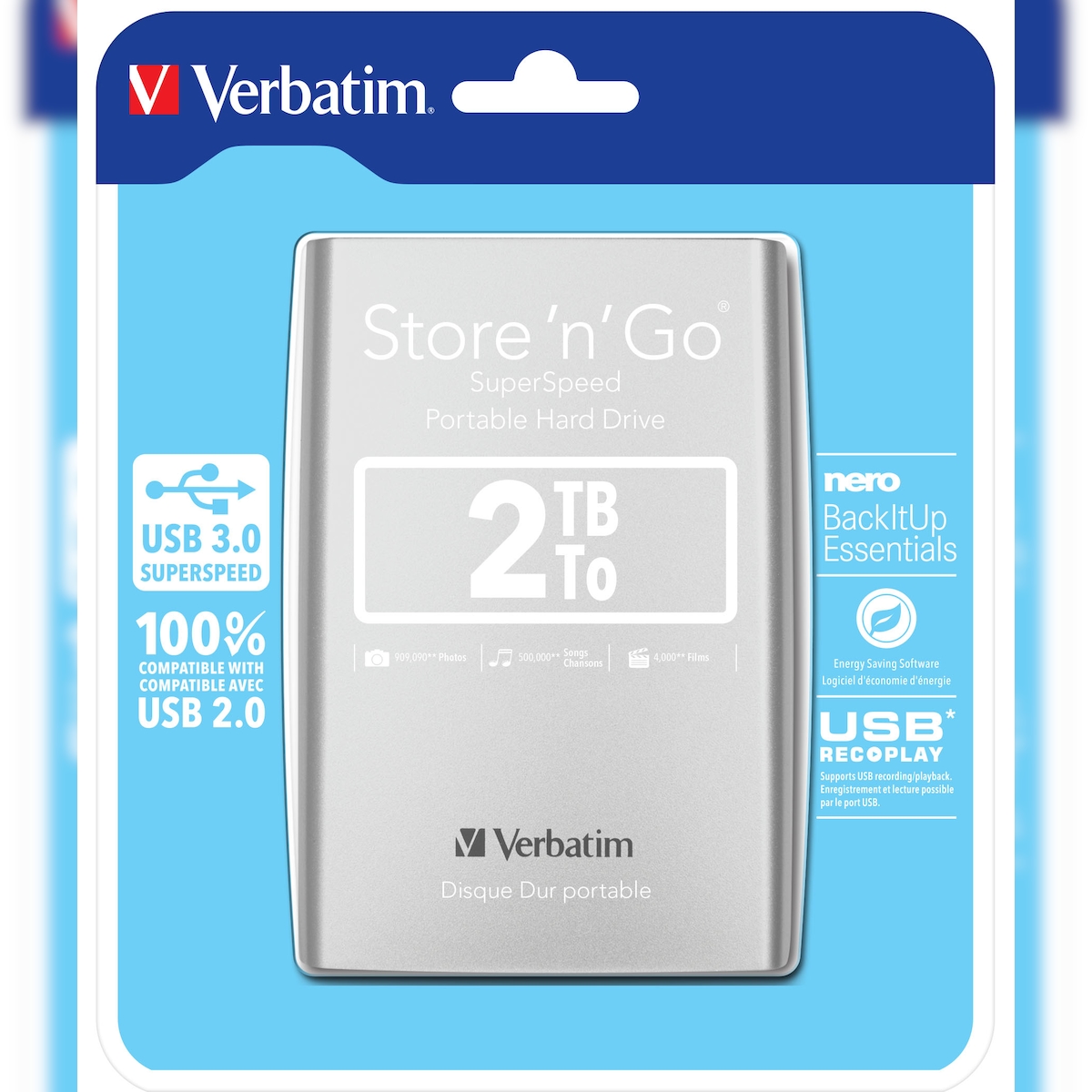 Verbatim Portables Festplattenlaufwerk Store 'n' Go USB 3.0, 2 TB, Silber