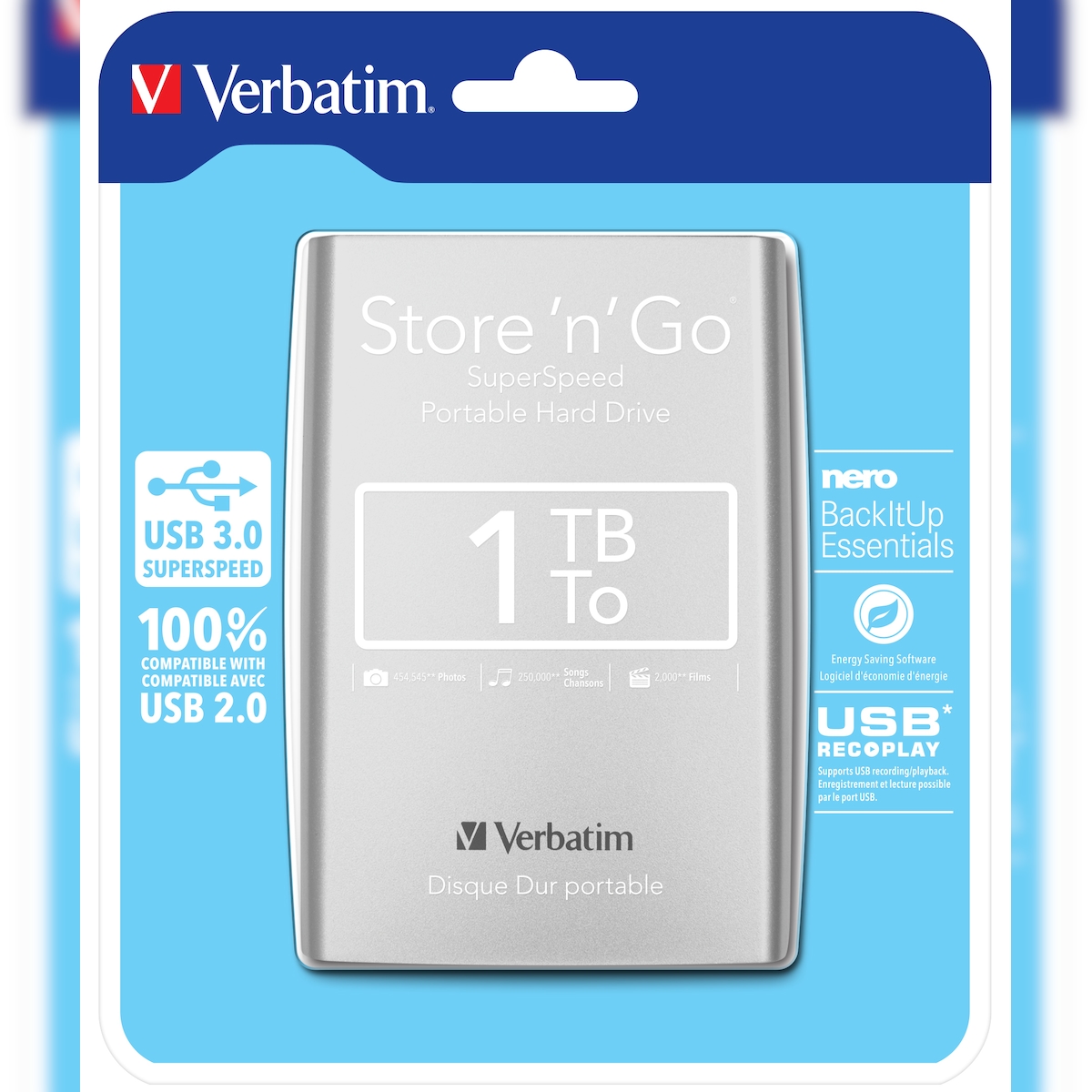 Verbatim Portables Festplattenlaufwerk Store 'n' Go USB 3.0, 1 TB, Silber