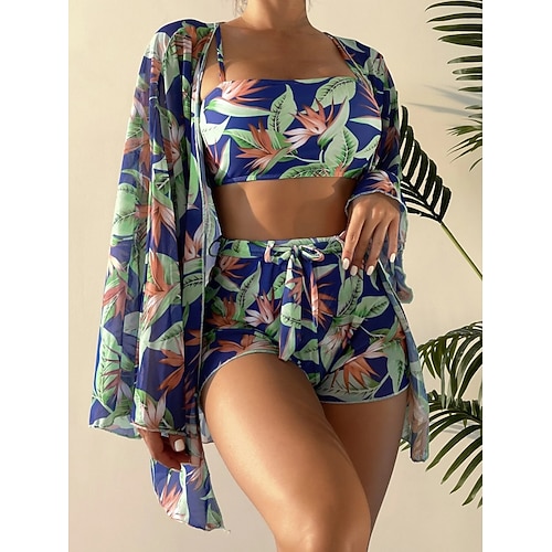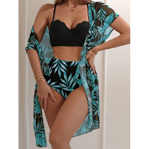 Costume da bagno bikini da donna 3 pezzi palma a taglio vivace snellente senza schienale vacanza spiaggia abbigliamento grafico foglie scollo a halter senza maniche