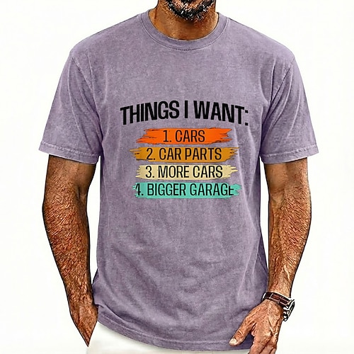 Maglietta divertente regalo per gli amanti delle auto cose che voglio 1 auto 2 pezzi di ricambio auto 3 altre auto 4 garage più grande maglietta grafica a maniche corte lavata da uomo abbigliamento