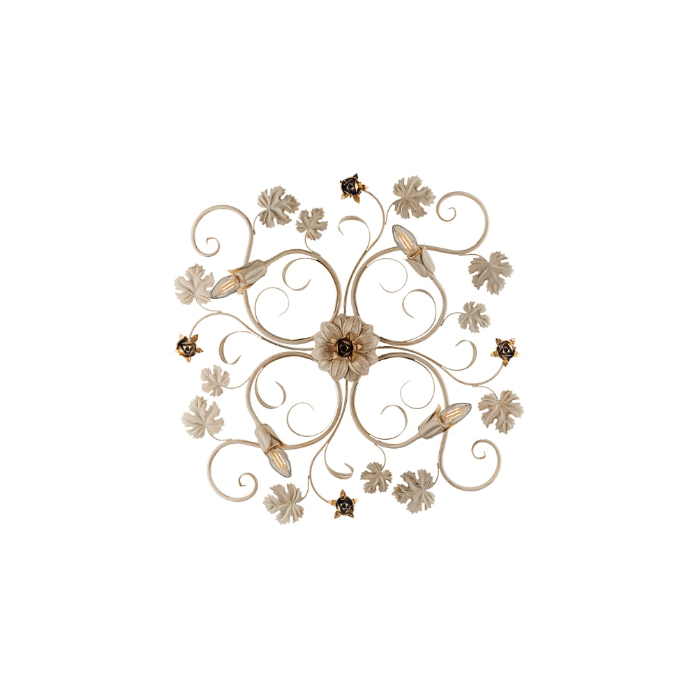 Plafoniera 4 luci arte povera con foglie in ferro avorio e oro